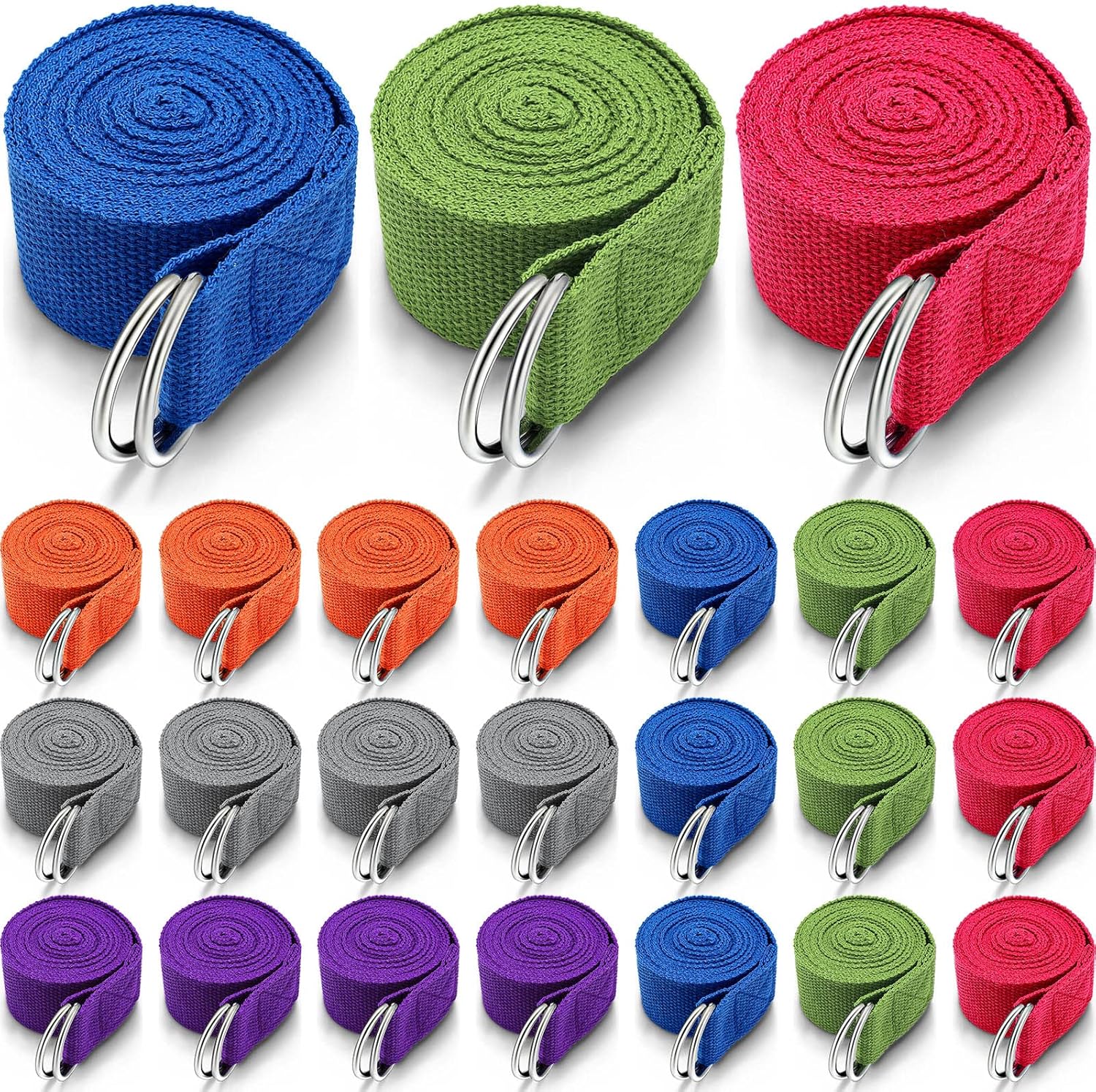 24 Pieces Yoga Strap Stretching Pilates Exercise Adjustable Straps 6 ft Non Elastic Yoga Belt with Adjustable D Ring Buckle for Pilates Gym Workouts Fitness