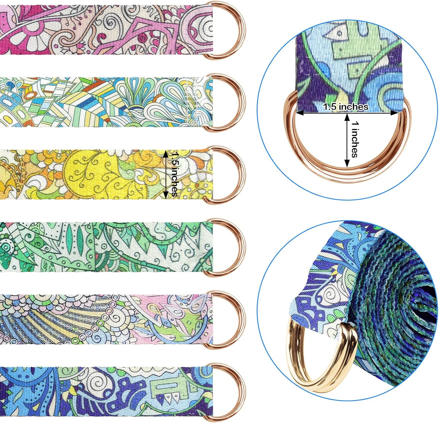 - 【6 Packs Themed Yoga Strap】 has released yoga straps with different themes, such as Bohemian yoga straps, geometric yoga straps, feather yoga straps and so on. Every theme yoga straps has their own patterns and features which could fit for different yoga environment and your moods.